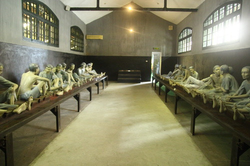 15h00: We continue to visit Hoa Lo Prison - was built in Hanoi by French in dates ranging from 1886 to 1889 to 1898 to 1901, when Vietnam was still part of French Indochina. The French called the prison "Maison Centrale" which originally used by the French colonists in Indochina for political prisoners and later by North Vietnam for United States prisoners of war during the Vietnam War from 1964 to 1973.