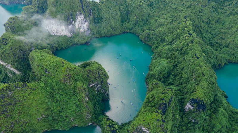 Choose between a refreshing swim or a climb to the peak for breathtaking views of Ha Long Bay.