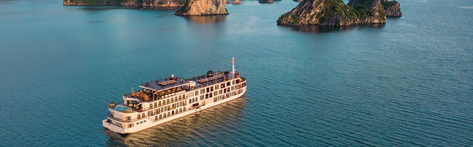 Designed for hig-end traverlers, the cruise offers 37 spacious cabins, each with a private balcony or terrace. Highlights include a rare double sundeck (1,450m²), fine-dining restaurant, piano lounge, vibrant bar, outdoor Jacuzzi, and a peaceful spa area. Every detail reflects Vietnamese artistry - from handcrafted lacquer paintings to premium wooden interiors - creating a serena and stylish ambiance. Operated by Indochina Sails, with over 30+ years of cruising expertises, Indochine Premium delivers curated itineraries, gourmet cuisine, and exceptional service. Ideal for couples, private FITs, and luxury groups seeking an elevant travel experience.